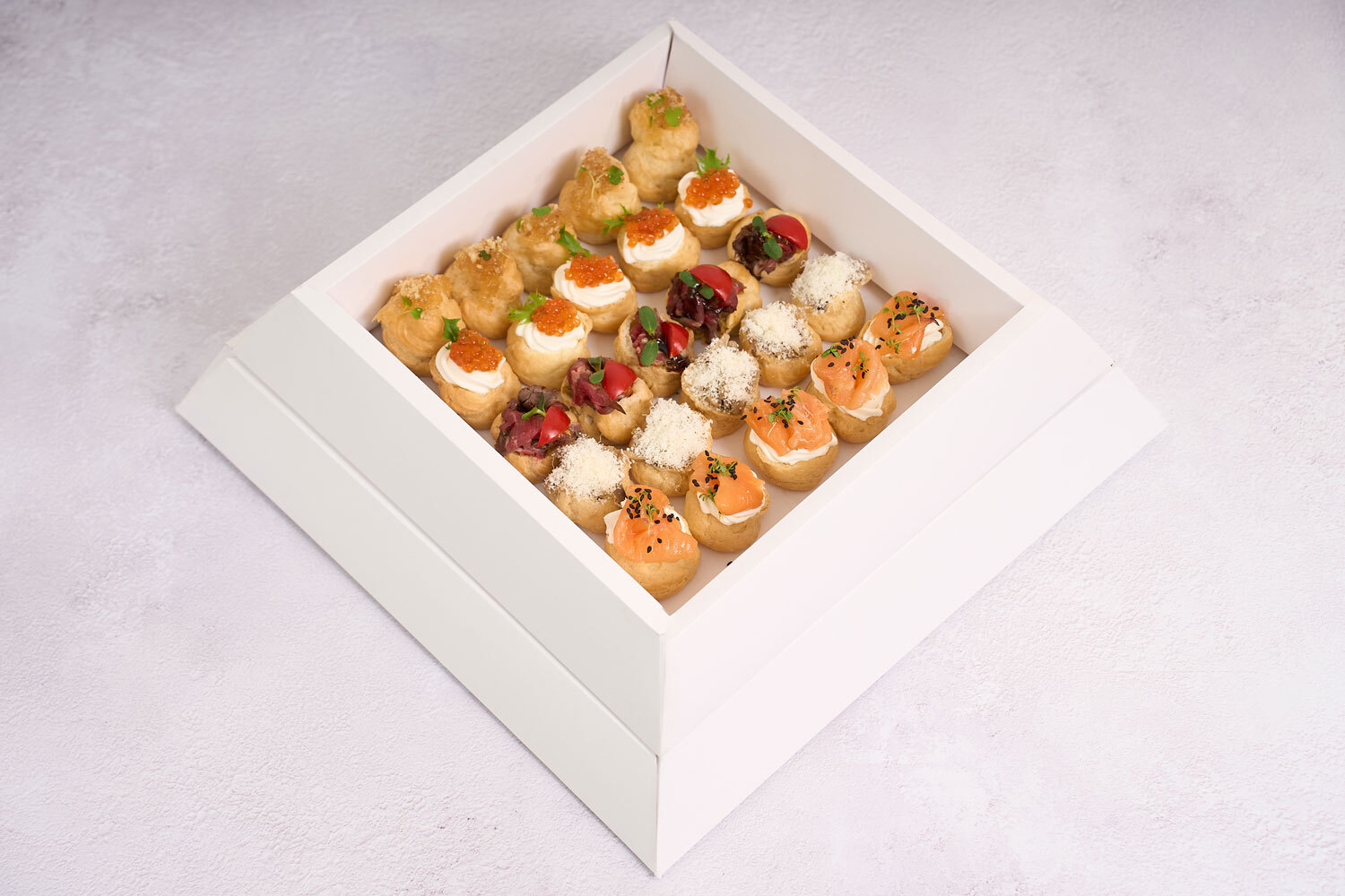 Состав: Мини панини, наггетсы, фри, сырные шарики с беконом, картофельные шарики